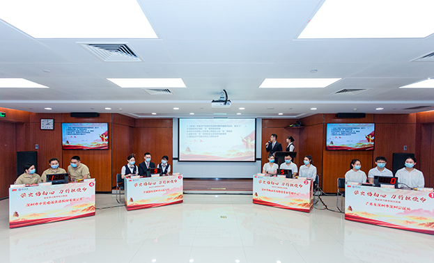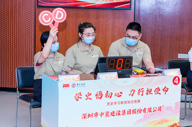 5月28日下午,中装建设联合中国银行深圳中心区支行、深圳市物业专项维修资金管理中心、深圳市深圳公证处共同举办了以“学史悟初心 力行担使命”为主题的党史学习教育知识竞赛。中装建设及三家共建单位党委班子成员、四家单位党员代表参加本次活动。