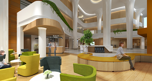 合肥离子医院中心是合肥综合性国家科学中心七大创新平台之一,位于合肥高新区燕子河路与长宁大道交口,总建筑面积约3.3万平方米。在本案设计中,中装建设以患者为中心,以“水”为主题,通过曲线空间带来舒缓的氛围,营造一所集家具、庭园、社区于一体的且兼顾私密性的健康中心。此外,公司通过运用BIM技术,使抽象化的施工更加简单化、更加直观化、更加高效。